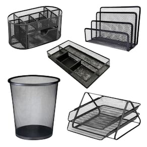 Kit Escritório Organizador Metálico Mesa Papel Lixeira 5 Pçs