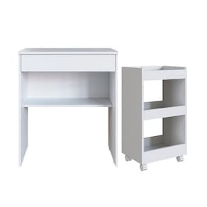 Este conjunto para escritório inclui uma Escrivaninha compacta com gaveta e um Armário para Livros com 3 prateleiras e 4 rodinhas, ideal para organizar seu espaço com estilo e praticidade. Perfeito para o home office, quartos ou salas, oferece tudo o que você precisa para trabalhar ou estudar de forma organizada.