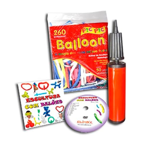 acompanha: 01 dvd escultura com balões 01 bomba de encher balões cores 01 pacote com 50 balões para escultura 260q