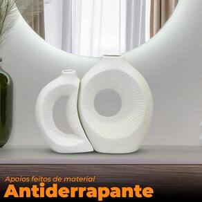 Com tamanhos distintos, estas esculturas se encaixam perfeitamente em mesas, prateleiras ou aparadores, adicionando um toque contemporâneo e refinado ao espaço. Além disso, o bico superior com 3,9cm de diâmetro no vaso maior e 2,3cm de diâmetro no vaso menor, permite que você use estas peças como vasos para pequenas plantas ou flores, trazendo ainda mais funcionalidade e versatilidade. Sua base possui 4 apoios feitos de material antiderrapante, evitando que sua decoração deslize ou derrape sobre o móvel, garantindo mais segurança e qualidade para as esculturas decorativas.