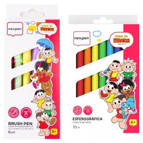 Kit esferográfica + brush pen da turma da mônica - newpen Kit esferográfica + brush pen da turma da mônica - newpen Brush pen turma da mônica perfumada - 6 cores - newpen Para quem ama arte e criatividade, as brush pens perfumadas da turma da mônica são uma explosão de cores e aromas Cada pacote traz 6 canetas , perfeitas para dar vida aos seus desenhos e caligrafias. Com pontas macias e flexíveis, elas permitem traços precisos de 2-4mm, sejam finos ou mais grossos, proporcionando um controle incrível sobre cada detalhe. Além das cores vibrantes, essas canetas exalam um suave perfume de melância, tornando o momento da criação ainda mais prazeroso. Essas canetas são ideais tanto para quem está começando quanto para os mais experientes no mundo das artes. Imagine, por exemplo, a possibilidade de criar uma ilustração com um traço delicado em um momento e, logo em seguida, fazer uma linha firme e marcante, tudo com a mesma ferramenta Além disso, com a qualidade da turma da mônica, que já encanta gerações, a diversão é garantida. Aposte na união perfeita entre arte, diversão e aquele toque especial de fragrância, e transforme qualquer projeto em uma verdadeira obra-prima Inmetro ocp 0116 registro 005 122/ 2022 Caneta esferográfica retrátil turma da mônica perfumada - 10 cores - newpen Kit caneta esferográfica retrátil da turma da mônica com 10 cores vibrantes e perfumadas Com tinta gel liquida que desliza quando você escreve, ponta 0.7mm. Para você usar no estojo, na bolsa, no trabalho, em casa. As canetas da turma da mônica vão encantar várias gerações. Cores: preto, verde claro, laranja, roxo, marrom, amarelo, vermelho, azul, rosa, azul claro. Todas as cores tem um cheirinho único e super especial Contém 10 canetas esferográfica retrátil perfumada turma da mônica newpen. Inmetro ocp 0116 registro 005 338/2022 O kit contem: 1 esferográfica retrátil turma da mônica perfumada 10 cores - newpen 1 brush pen turma da mônica perfumada - 6 cores - newpen
