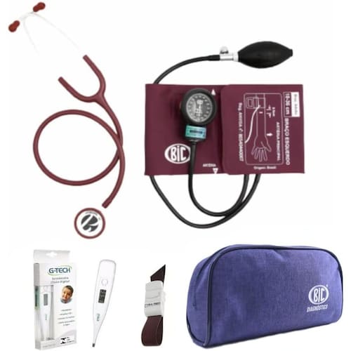 Conjunto Esfigmomanômetro + Estetoscópio Duplo Adulto e Infantil BIC.