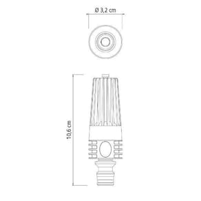O esguicho é conectado em mangueiras de 1/2, 5/8 e 3/4 polegadas, graças ao sistema de engate rápido presente no kit. Além disso, o kit também inclui um engate rápido para mangueira de 1/2 polegada, um adaptador com rosca 3/4 e redução 1/2 para torneira, e um engate rápido com aquastop para mangueira de 1/2 polegada.