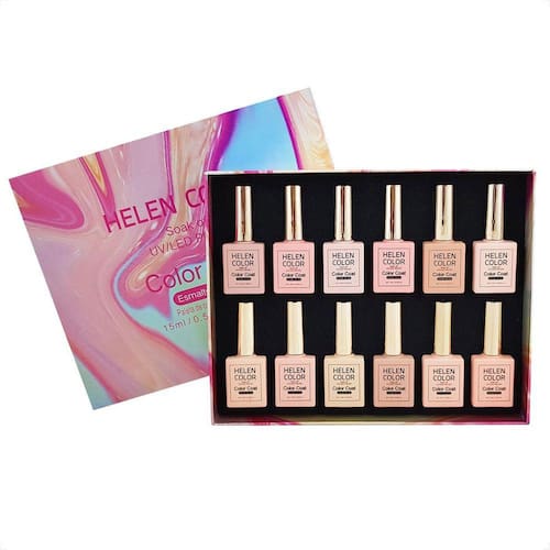 Caixa de esmalte em gel tons de nude cores atuais e realistas.Com alta pigmentação, durabilidade perfeita sem estragar, os esmaltes em gel vieram pra ficar. eles só saem com removedores específicos ou desbaste total com lixas especiais e a secagem é necessária ser em cabine e a aplicação deve ser feita por uma profissional. neste kit são 12 esmalte em gel em tons de nude, desde os mais claros até os mais intensos.Acompanha caixa decorativa para armazenar os frascos. 001 Nude cremoso 002 Rosê nude cremoso 003 Nude rosinha cremoso 004 Nude cremoso 005 Nude amendoa cremoso 006 Nude claro cremoso 007 Nude areia cremoso 008 Nude rosado cremoso 009 Areia nude cremoso010 Nude intenso cremoso011 Nude creme cremoso 012 Nude rosa cremosoModo de usoApós a cutilagem , inicie a com os preparadores de fixação, desidratadores e primers para melhor fixação, prossiga com a base em gel e secagem em Cabine, aplique o esmalte com cuidado para não borrar muito as laterais e já faça a limpeza imediata do excesso com auxílio do palito e faça a secagem em Cabine Le/UV por 2 minutos.Prossiga com a finalização com o Top Coat e secar em Cabine.Perguntas frequentes tem que usar desidratador e primer na esmaltação em gel sim, o uso dos preparadores é essencial para uma boa aderência do esmalte.Pode usar misturas de esmalte comum com esmalte em gel não, o correto é fazer o uso do esmalte em gel de secagem em cabine ou o esmalte tradicional de secagem natural. tem que passar top coat /selante na esmaltação em gel O uso do top coat protege a cor e proporciona um brilho extra a cor.É fundamental o uso dele.Como remover esmalte em gel A remoção da esmaltação em gel poderá ser feita com removedores específicos de esmalte em gel ou lixamento total com lixas específicas de gramatura 100/180 ou motor de unha com brocas de remoção.