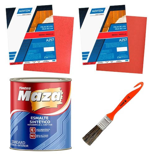 Kit Esmalte Sintético Preto Maza + Lixas Norton + Pincel Tigre
