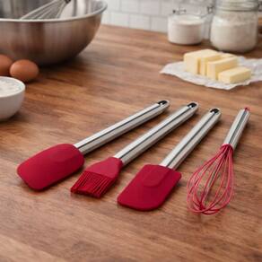 O Kit de Espátulas, Pincel e Fouet Culinário em Silicone Premium Bordô com Cabo em Aço Inox Elite é a escolha perfeita para quem busca qualidade, durabilidade e sofisticação na cozinha. Composto por 4 peças essenciais, o kit atende desde preparos simples até receitas mais elaboradas, oferecendo praticidade, precisão e segurança para suas panelas.
