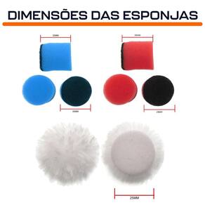 Kit Polimento para Micro Retífica 10 Peças Espuma e Boina 25mm com Base Aderente Dremax - Marca: Dremax - Referência: EL004-2X - 2 Boina Pele de Carneiro para Polir 25mm - 4 Espumas 25mm Azul Polimento Fino - 4 Espumas 25mm Vermelha Polimento Extra Fino - Base aderente - Diâmetro: 25mm - Para uso com suporte de lixa com base aderente não incluso - Indicado para polir e encerar diversos tipos de materiais - O material da esponja é macio e delicado, o que não danifica a peça, e não é facilmente deformado. - Polimento suave, pode ser utilizado para polimento e detalhamento em veículos.. Excelente em aplicações como faróis de carros, faróis de neblina, luzes de freio, maçanetas, arranhões de vidro, painéis internos do console, ou algumas outras áreas pequenas. - Indicado para todas as marcas de micro retíficas, como Dremel, Charbs, Einhell, Black+Decker, Dremax, Mondial, Vonder, Titanium, Western, Ingco, Gamma, Wesco, etc. - : 90 dias contra defeitos de fabricação A DREMAX é a primeira e única marca brasileira dedicada exclusivamente às micro retíficas, acessórios e acoplamentos para esta indispensável ferramenta. Seja para trabalhos de precisão, artesanato, modelagem ou reparos, a DREMAX tem o produto certo para você