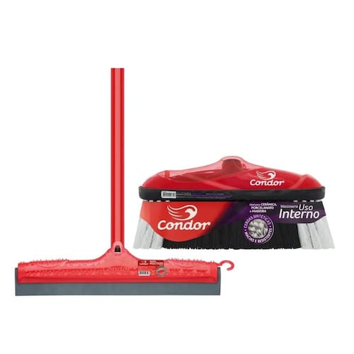 Descrição do ProdutoO Rodo Multiuso Condor 30cm é a estrela do kit, projetado com uma borracha de duplo EVA que proporciona uma limpeza eficaz em diversas superfícies. Com suas garras que prendem o pano de chão, você terá a certeza de uma limpeza mais resistente e eficiente. Seu tamanho de 30cm é ideal para pequenas áreas, tornando-o perfeito para espaços como banheiros e cozinhas.