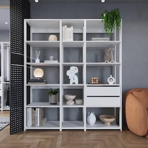 É a escolha ideal para quem busca uma solução prática e moderna para organizar e decorar seus ambientes. Produzida em MDP de 15mm com um acabamento fosco, ela combina com a durabilidade e com um visual sofisticado, sendo uma excelente opção para quem valoriza um design moderno e funcional. Seu design prático conta com 02 gavetas espaçosas para armazenamento de itens menores e nichos decorativos. Suporta até 7 kg por prateleira, proporcionando um espaço seguro e organizado para livros, objetos decorativos, plantas, documentos, entre outros. Seu design versátil permite que ela seja utilizada em diversos cômodos, como sala de estar, quarto, escritório ou área de estudo, adaptando-se perfeitamente a espaços pequenos e valorizando o ambiente com estilo. Este móvel chegará em sua casa separado em 03 Volumes.