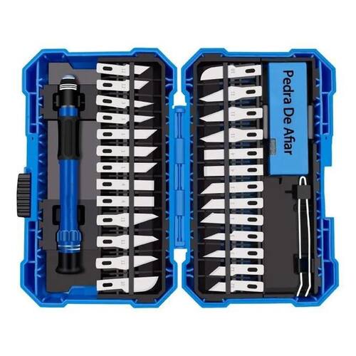Transforme seus projetos de patchwork e artesanato em obras-primas com precisão inigualável Tenha o controle total em suas mãos e eleve a qualidade do seu trabalho manual a um novo patamar. Descubra a diferença que um kit de precisão faz: Corte Preciso e Detalhado: Ideal para recortes finos em tecidos, papel, couro e outros materiais, garantindo acabamentos impecáveis em patchwork, scrapbooking, modelismo e muito mais. Ergonomia e Conforto Superior: O cabo ergonômico em liga de alumínio com revestimento em borracha proporciona uma pegada firme e antiderrapante, reduzindo a fadiga e aumentando o controle durante longas sessões de trabalho. Durabilidade e Resistência: Fabricado com liga de alumínio de alta qualidade e lâminas em aço inoxidável, este kit é construído para durar, resistindo à ferrugem e ao uso contínuo. Versatilidade Completa: Com 26 lâminas variadas, pinça, pedra de afiar e cabo ergonômico, você terá todas as ferramentas necessárias para qualquer tarefa criativa. Organização e Proteção: Acompanha uma caixa de transporte resistente, mantendo suas ferramentas organizadas, seguras e prontas para usar onde quer que sua criatividade te leve. Especificações Técnicas: Material Principal: Liga de Alumínio, Borracha, Aço Inoxidável, Plástico Cor: Azul Lâminas: 26 unidades em aço inoxidável Acessórios Inclusos: 1 Cabo para Lâminas, 1 Pedra para Afiar, 1 Pinça, 1 Caixa de Transporte : 3 meses contra defeitos de fabricação. Não espere mais para elevar o nível dos seus projetos Clique em 'Comprar Agora' e garanta seu Kit Estilete de Precisão 29 Peças para criar com excelência Marca: Não Informado
