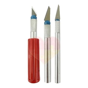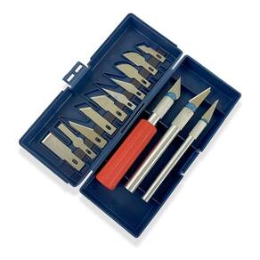 Características: 3- cabos tamanho sortidos 13- laminas de tamanhos variados afiadas para reposição 1- estojo Marca: Artmak,Lanmax,Westpress