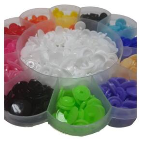 Kit Colorido 180 Botões Pressão Plástico Lanmax N12 Organizador com 13 espaços, são 12 cores 10 pares de cada cor, no total de 180 botões de Pressão 12mm redondos. Botões de ótima qualidade para uso em roupas de bebês, carteiras, bolsas entre outros. Para ser utilizado com alicate de pressão Cores: 60 Branco 20 Preto 10 Verde Claro 10 Lilás 10 Amarelo Claro 10 Azul Turquesa 10 Azul Claro 10 Amarelo 10 Laranja 10 Vermelho 10 Pink 10 Rosa Botões tamanho 12mm