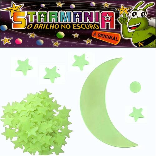 Produto , revendedor autorizado kit star mania com 103 peças que brilham no escuro. Acompanha fita dupla face para fixação das peças. Fabricação em plástico polipropileno pigmentado fosforescente. Composição do kit: - 100 estrelinhas com 36 milímetros; - 1 meia lua 210 mm; - 1 planetinhas com 30 milímetros; - 1 mini estrelinhas com 25 milímetros; - aprox. 103 fitas dupla face para fixação. Com mais de 20 anos de mercado e mais de 20 milhões de peças produzidas, a star mania traz a você um produto de excelente qualidade para decoração de ambientes. O kit da star mania é composto por diversas peças exclusivas para decoração do seu quarto. No processo de fabricação, é utilizado o plástico de polipropileno na produção das peças com pigmentação importada diretamente da europa, garantindo à você um produto de com uma qualidade exclusiva. Possuímos diversos modelos, consulte nossa linha de produtos da marca star mania em nossos demais anúncios. Este produto é um produto da marca star mania, a marca registrada inpi nº 821858661 . Marca: Starmania