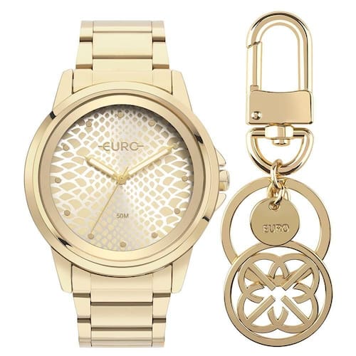 Kit Euro Feminino Soul Dourado - Eu2035ytw/k4k Eu2035ytw/k4k A coleção Euro Soul traz mais uma opção para complementar o seu look. O modelo possui caixa e pulseira douradas, e seu diferencial fica por conta do efeito moderno da estampa tradicional de cobra em dourado no mostrador complementando com um lindo Bag Charm de . Um relógio ideal para mulheres ousadas que gostam de ressaltar seu estilo em qualquer momento. Cor da Caixa - Dourado Formato da Caixa - Redondo Material da Pulseira - Aço Tipo de Fecho - Trava Lateral Formato da Caixa - Redondo Garantia - 12 Meses Cor do Mostrador - Prata Cor da Pulseira - Dourado Genero - XML - Feminino Tamanho - XML - G Largura da Caixa (cm) - 4,2 Resistente a Água - 5 ATM Descrição da Resistência - A resistência deste produto permite apenas respingos de água ao lavar as mãos. Não utilizar este produto em qualquer situação que haja direto com água. plaintext_description_meli - Kit Euro Feminino Soul Dourado - EU2035YTW/K4KA coleção Euro Soul traz mais uma opção para complementar o seu look. O modelo possui caixa e pulseira douradas, e seu diferencial fica por conta do efeito moderno da estampa tradicional de cobra em dourado no mostrador complementando com um lindo Bag Charm de . Um relógio ideal para mulheres ousadas que gostam de ressaltar seu estilo em qualquer momento. meli_title - Kit Euro Feminino Soul Dourado - EU2035YTW/K4K Modelo_ML - Kit Euro Feminino Soul Dourado - EU2035YTW/K4K Cor - Dourado Tamanho - Grande Gênero - Feminino