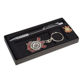 Uma ótima opção para presentear ou para todo torcedor apaixonado, o kit conta com três peças armazenadas em uma caixinha personalizada. O kit contém uma caneta, um chaveiro e um boton. A caneta é confeccionada em metal e plástico e traz design com detalhes em prata, além do nome e escudo da equipe, que marcam presença em branco. Já o boton é produzido em metal e traz o formato e as cores do escudo do clube, apresentando dimensões de 2x2cm e fecho. Por fim, o chaveiro é fabricado em metal, conta com o escudo da equipe e argola para encaixar a chave.