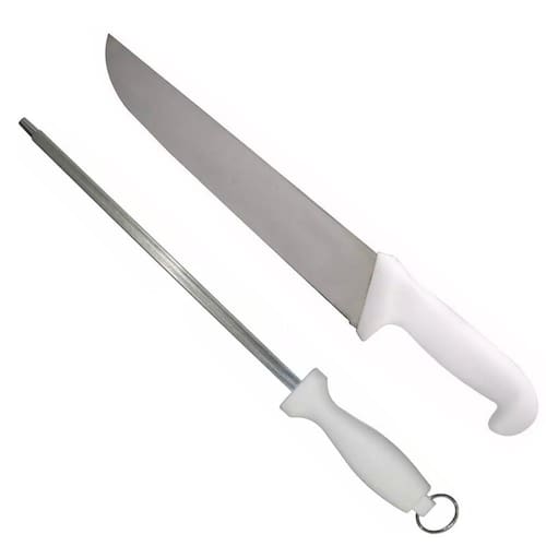 Kit Faca Aço Inox 10" Cabo Branco + Chaira Profissional 12"