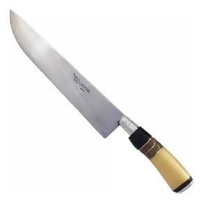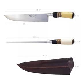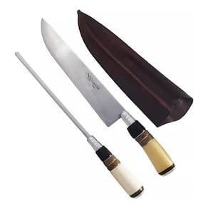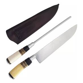 Kit Faca Artesanal 10Pol E Chaira Estriada Cabo Madeira 0Ss0