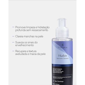 Sabonete Clareador HialuX 110ml : Média de 60 aplicações, ideal para limpeza diária da pele.