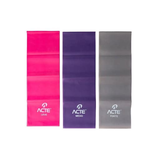 Nome: Kit Faixa Elástica Latex BandGênero: UnissexIndicada para: ExercíciosResistências: Leve, Médio e forteBenefícios: Fortalecimento das articulações, aumento e desenvolvimento da resistência e força. Crescimento da massa msucular; Possibilidade de treinar em casa ou ao ar livreContém: 3 Faixas elásticas em látexDimensões aproximadas: Leve: 150cm x 12cm - 0,35mm (espessura.Médio: 150cm x 12cm - 0,45mm (espessura)Forte: 150cm x 12cm - 0,60mm (espessura)Código do artigo: T13-RMarca: Acte