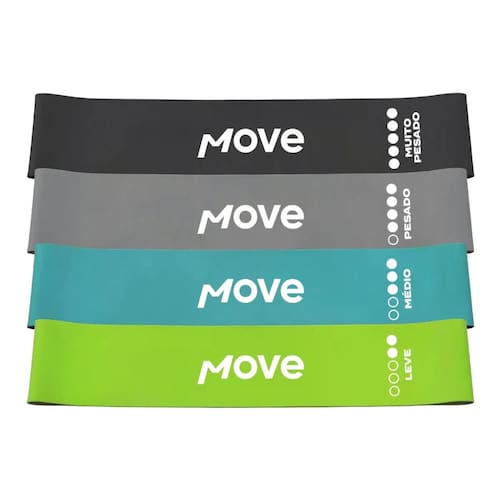 Quer treinos mais intensos? A linha de mini bands Move possui quatro versões com diferentes níveis de resistência, possibilitando a evolução gradual do treino.