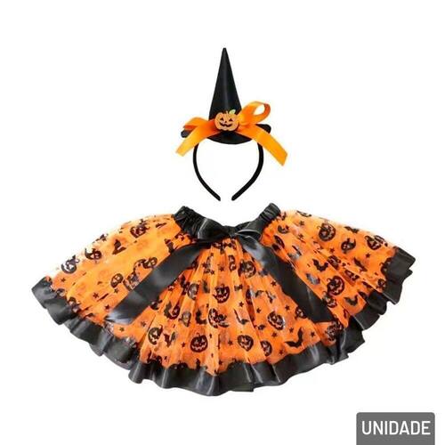 KIT Fantasia Halloween Bruxa Saia e Tiara Celebre o espírito arrepiante do Halloween com nossas Fantasias, a Bruxa é uma adição de enfeite intrigante para sua festa. Feita com meticuloso detalhamento, este kit de fantasia possui Saia com detalhes estampados, e Tiara com detalhes de caveira e abóbora, traz a essência do macabro de uma maneira elegante e sofisticada.\nVariedades de Halloween para escolher entre decoração, fantasias, enfeites, utensílios e muito mais.\nEspecificações:\nMarca : LU FEST\nTipo de material : Plástico\nCores ou Estampa : Preto, Laranja\nDimensões do Produto : 54 X 30 X 2 CM\nDimensões da Embalagem : 54 X 30 X 2 CM\nPeso Bruto (Gramas) : 0.084