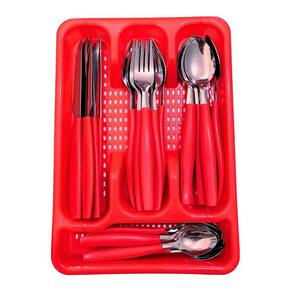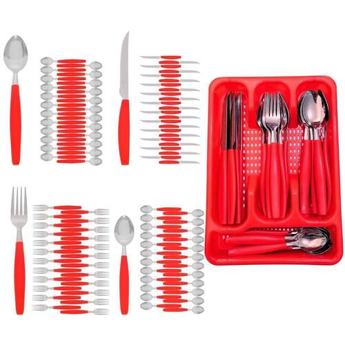 Kit Faqueiro Berlim Vermelho Inox 96 Pçs C/ 4 Porta Talheres