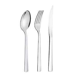 Facas totalmente temperadas, que garantem maior durabilidade no fio de corte e maior resistência à corrosão, e por suas características de temperabilidade, não riscam as porcelanas.