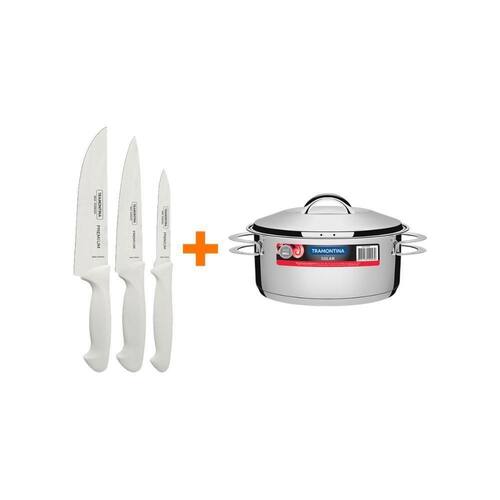 Jogo de Facas Premium com Lâminas em Aço Inox e Cabos de Polipropileno Branco 3 Peças - Tramontina 24499811