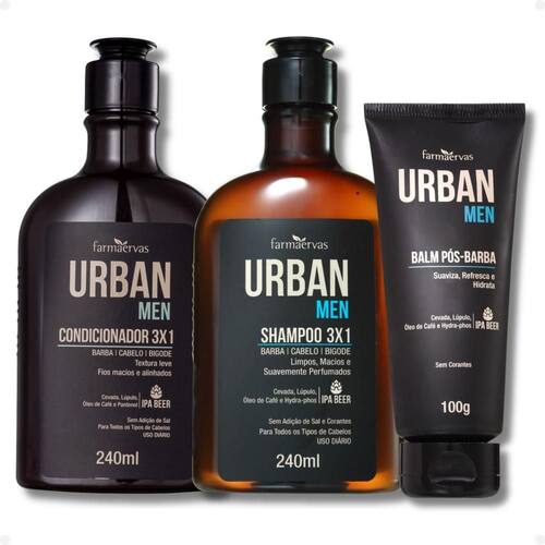 Descubra a praticidade e eficiência do Kit Farmaervas Urban Men: Shampoo, Condicionador e Balm, a solução completa para os cuidados diários de barba, cabelo e bigode do homem moderno. Desenvolvido pela FARMAERVAS, este kit oferece uma experiência de higiene e tratamento inspirada nas melhores IPAs, garantindo fios e pelos limpos, hidratados e com um aroma agradável. Ideal para quem busca otimizar a rotina sem abrir mão da qualidade, o Shampoo Urban Men e o Condicionador Urban Men, que juntos proporcionam maciez, brilho e alinhamento, transformando o cuidado pessoal em um momento de puro bem-estar. O kit é complementado com um Balm para cuidados adicionais.