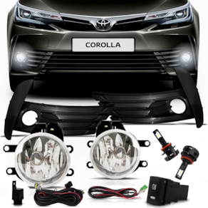 Compatível com:- Corolla 2017 até 2019Especificações Técnicas- Lente Lisa em Plástico Reforçado- Encaixe de Lâmpadas - Regulagem de Foco Manual- Encaixe Perfeito- Excelente Acabamento- Possui BotãoConteúdo da embalagem:- 02 Faróis de Neblina- 02 Grade Preta- 01 Chicote Elétrico- 01 Botão- 01 Relê AuxiliarNão se aventure, procure um profissional habilitado para fazer a sua instalação