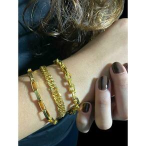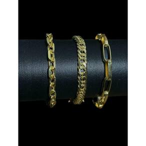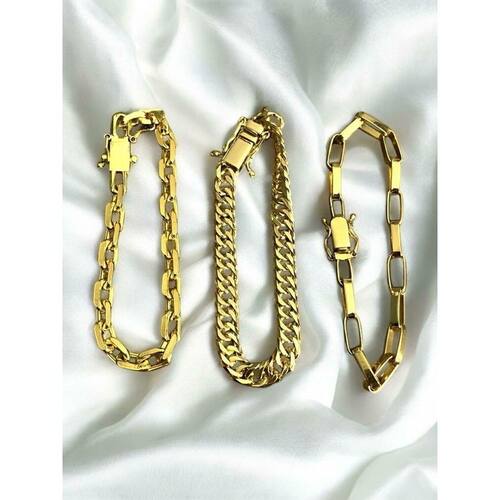 Kit Feminino Mix 3 Pulseiras 6mm Banhado a Ouro 18k Luxo Detalhes do Produto: Material: ligas metálicas de alta qualidade, especialmente tratadas para fixação e absorção do ouro, com acabamento em verniz protetor. Aparência: visual idêntico ao ouro maciço. Produção: artesanal, com atenção meticulosa aos detalhes. Banho: 10 camadas espessas de ouro 18k, finalizadas com verniz antialérgico . Elos: soldados varia conforme o modelo . Pedras: zircônias brilhantes cravejadas quando aplicável . Tamanhos Disponíveis: Cordões Masculinos: 70cm padrão e 60cm sob consulta/Pedido Via Chat . Cordões Femininos: 50cm padrão e 45cm sob consulta/Pedido Via Chat . Pulseiras: 21cm padrão ; tamanhos de 18cm a 23cm sob consulta/Pedido Via Chat. Pingentes: conforme imagens; consulte para mais detalhes via chat. Espessuras Recomendadas para Cordões / Pingentes: P: 1mm a 4mm M: 4mm a 8mm G: 6mm a 13mm Gg: 12mm a 18mm Incluso na Compra: Saquinho de organza para armazenamento seguro. Caixa elegante, perfeita para presente. Cupom de desconto para a próxima compra. Flyer com outros produtos da coleção. Carta de agradecimento personalizada. Adesivo da marca ToJoia18k. Informações Adicionais: : 6 meses termos acompanham o produto . Devolução: 7 dias para devolução sem questionamentos. Envio: despacho em até 24 horas úteis após confirmação do pagamento. Cuidados com a Peça: Evite contato com produtos químicos; aguarde o perfume secar antes de usar. Evite contato com shampoo, condicionadores e suor excessivo. Armazene em local seco, preferencialmente no saquinho de organza fornecido. Uso no mar e piscina é permitido; lave com água corrente e sabão neutro após. Por que Escolher a ToJoia18k Semi-joias luxuosas que combinam estilo, qualidade e sofisticação. Banho espesso de ouro 18k, garantindo brilho duradouro e acabamento impecável. Design exclusivo e produção artesanal, perfeitos para qualquer ocasião. Materiais premium que asseguram durabilidade. Ao escolher uma semi-joia ToJoia18k, você investe em qualidade, elegância e uma experiência única. Aguardamos sua compra Observação: pode ocorrer variação no fecho raramente . Imagens reais, sem edição. Qualquer dúvida, estamos à disposição para esclarecimentos. Marca: Não Informado