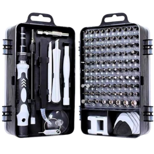 Tenha em mãos o kit de ferramentas com 115 chaves de precisão, ideal para reparar seus celulares, notebooks, tablets e outros dispositivos eletrônicos com este kit completo e versátil, você pode economizar dinheiro e tempo ao fazer os próprios reparos em casa.