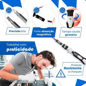 Cansado de não conseguir consertar seus eletrônicos Tenha a solução completa e para qualquer reparo de celular, tablet ou notebook em suas mãos Descubra os benefícios que vão transformar sua experiência: Reparo Completo: 115 peças essenciais para consertar smartphones, tablets, notebooks e outros eletrônicos. Precisão : Bits de alta precisão para parafusos minúsculos e complexos. Versatilidade Inigualável: Inclui chaves Torx sem furo , Phillips, Fenda, Hexagonal, Triângulo, Y, U e soquetes. Facilidade de Uso: Ferramentas ergonômicas e acessórios como eixo flexível e ventosa que tornam o trabalho mais confortável e rápido. Magnetismo Inteligente: Bloco magnetizador/desmagnetizador para gerenciar parafusos com segurança e eficiência. Durabilidade e Qualidade: Construído com materiais de alta qualidade para uso prolongado. Organização Impecável: Caixa de plástico resistente e organizada para manter tudo em ordem. O kit inclui: 1 x Caixa de armazenamento 1579052mm 1 x Eixo de extensão flexível 1 x Barra de extensão 128mm 1 x Pinça 122mm 3 x Ferramentas de alavanca de plástico 1 x Ferramenta de remoção de cartão SIM 1 x Chave 98mm 1 x Ventosa 35mm 1 x Bloco magnetizador/desmagnetizador 1 x Agulha para remoção de cartão SIM 6 x Palhetas de abertura 1 x Suporte de broca para chave de fenda elétrica 1 x Adaptador sleeve 98 x Bits de chave de fenda PH000 a T20, Hexágono, Triângulo, U, Y, Soquetes 4mm Transforme-se em um especialista em reparos eletrônicos. Clique em Comprar Agora e garanta seu kit completo Em caso de dúvidas, estamos à disposição para responder rapidamente. Boas compras Homologação Anatel: 109062214103 Marca: Não Informado