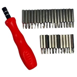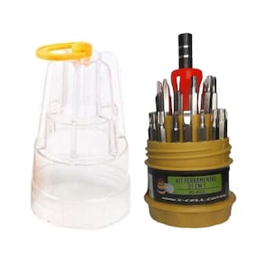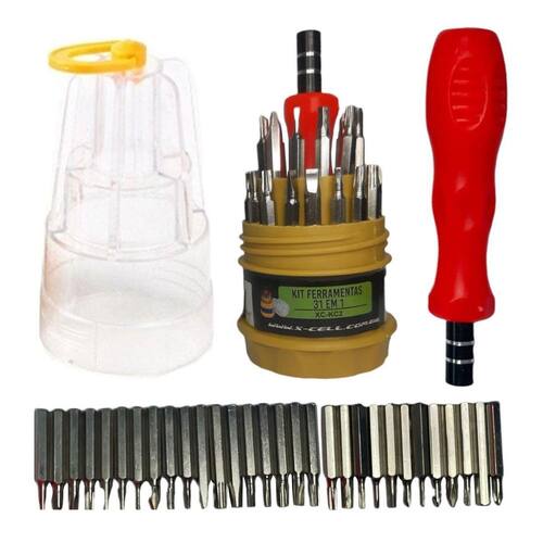 Este Kit de Chaves 31 em 1 com estojo possui vários modelos de ponta de chaves. São 31 peças ideal para manutenção de relógios, celulares e eletrônicos em geral.Ferramentas: Cabo para ponta de chave; Pontas de chaves; Chave do tipo Torx; Chave Phillips; Chave Fenda; Chaves Allen.Características:- Marca: Flex- Modelo: XC-KC2Especificações:- Kit Ferramenta 31 em 1;- Blister com 1 unidade;- Com 30 pontas imantadas;- Ótima qualidade e precisão;- Cabo giratório;- Aderente;- Antiderrapante;- Encaixe magnético;Conteúdo da embalagem:- Kit Ferramentas 31 Chaves em 1 Granel XC-KC2 - Flex Marca: Não Informado Ean: 7904390928537