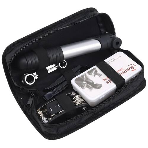Um item completo e portátil, essencial para qualquer ciclista. Com esse kit você consegue efetuar qualquer tipo de reparos em sua bike, seja apertar um parafuso ou até fazer remendos no pneu. A bolsa é compacta e pode ser fixada em qualquer modelo de quadro da bicicleta.
