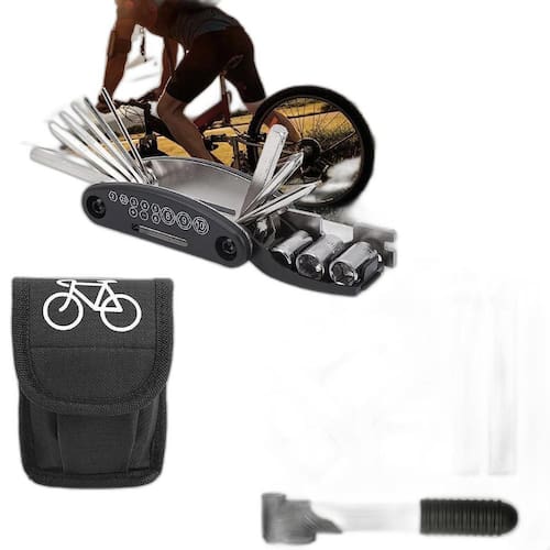 Kit Ferramentas Bicicleta Chaves Bomba De Ar Remendo Pneu Kit Ferramentas Bolsa Bike Chaves Remendo Bomba para Bicicletas Se você é ciclista, ou pensa em começar agora, provavelmente sabe que segurança ao pedalar é extremamente importante, e pra isso você precisa de um kit completo de ferramentais para dar reparos na Bike em qualquer situação que venha acontecer durante suas viagens. E o nosso kit portátil é o equipamento perfeito pra te ajudar O Kit de ferramentas para Bike chegou para revolucionar as soluções disponíveis aos ciclistas. Leve e portátil, você poderá transportar a bolsa com facilidade no quadro da bike, pois a bolsa conta com fitas de fixação no quadro e não pesa quase nada. Sabemos que furar pneus é um risco frequente e precisamos ter itens em mãos que nos dê suporte quando os pneus furam. Agora esse problema estará resolvido, uma vez que o kit conta com todos os itens necessários para o reparo das câmaras de ar. E tem mais Junto temos Jogo Multi chave - essencial para dar qualquer tipo de reparo nas nossas Bikes. Seja no pedal curto ou longo, na trilha ou no asfalto. Você estará em Segurança -------------------------- Itens Inclusos - Canivetes com chaves: Multi funções: Chave de Fenda e Philips Chave Allen 2 / 2,5 / 3 / 4 / 6mm Soquete Sextavado, ou chave Pito 8 / 9 / 10mm Chave de Boca 8 / 10 / 13 / 15mm - Bomba de ar com adaptador para bico - Kit Reparo Para Os Pneus - Alavancas de remoção de pneus - Estojo com compartimentos de separação das ferramentas Dimensões aproximadas 22x10x5cm ================================================================ Dúvidas Frequentes - O produto é resistente Trabalhamos apenas com produtos com material de altíssima qualidade, produtos de alta durabilidade e procedência. - Tem Oferecemos de 3 meses pra defeitos técnicos. Marca: Não Informado Ean: 7894586137594