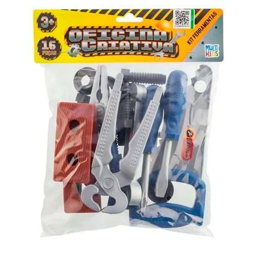 Kit Ferramentas Infantil - Oficina Criativa - Mix Ferramentas - 16 Peças - Multikids: foi produzido com todo o carinho para que as crianças que se inspirem em engenheiros e construtores para que possam soltar a imaginação! São 16 peças com diversas ferramentas realistas e os mais divertidos acessórios. A Oficina Criativa é o brinquedo ideal para todas as idades por estimular a criatividade e desenvolvimento das crianças. Informações: • Produto: Mix Ferramentas 16 Peças • Marca: Multikids • Coleção: Oficina Criativa • Tipo: Kit Ferramentas Infantil • Categoria: Faz de Conta • Conteúdo: 16 peças • Recomendação: para crianças a partir dos 03 anos de idade Especificações: • Referência: BR1835 • Código de Barras: 7908414470798 • Embalagem (C x A x L): 21 x 24 x 05 cm • Embalagem (Peso): 0.050 kg • Material / Composição: Plástico • Registro: CE-BRI/BRICS 00706-18 NM 300/2002 • Certificado: Órgãos Autorizados - OCP´S (Organismos de Certificação de Produtos) Benefícios de brincar: • Eleva a autoestima • Exercita a memória • Estimula o raciocínio • Exercita o imaginário • Desenvolve a criatividade • Desenvolve percepção visual • Desperta a atenção e curiosidade • Desenvolvimento neuropsicológico • Estimula habilidades motoras básicas • Incentiva a comunicação e linguagem • Desenvolve aspectos emocionais e afetivo • Estimula o reconhecimento de formas e cores Aviso: • As imagens são meramente ilustrativas • Os pesos, tamanhos e medidas são aproximados • As cores e estampas dos produtos podem ter variações • As informações são de responsabilidade do fabricante ou fornecedor