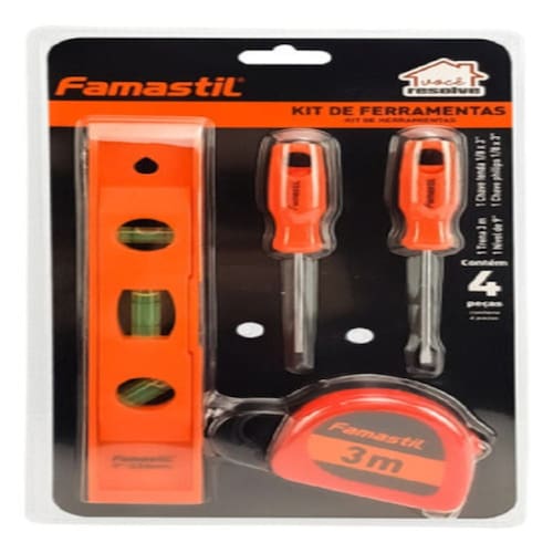 Sobre este item: Ideal para Construção 1 Trena 3m 1 Nível 9" 1 Chave de Fenda 1/8 x 3" 1 Chave Philips 1/8 x 3" Contém 4 itens