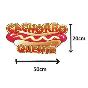 Painel Barraca do Cachorro Quente Medidas aproximadas da placa: 50cm x 20cm Variando de Medidas Aproximadas Material: Papel Cartonado Firme Cuidados: Conservar fora da luz solar e não expor a temperatura superior a 50ºC