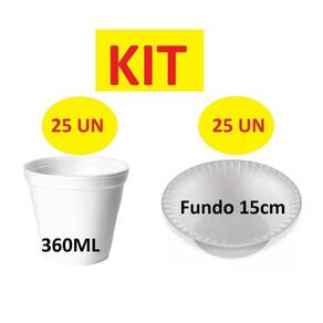 Kit Festa Descartáveis Isopor Com 25 Potes 360Ml +25 Cumbucas Contém no kit: 25 potes de isopor térmico 360 ml 25 cumbucas isopor térmico 15cm