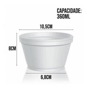 Contém no kit:50 potes de isopor térmico 360 ml 50 cumbucas isopor térmico 15cm Material do recipiente: isopor Inclui tampa: Não Pote não é copo Capacidade: 360mlTamanho aproximadamente: 10,5cm x 8cm x 6,8cmPrato/ CumbucaTamanho aproximadamente: 15cm os potes térmicos são ideais para sorvetes, mousse, massas, queijo ralado, salada de frutas, sobremesas, caldos, feijoada, arroz e mais. Estes potes são feitos de um poliestireno muito compacto que não permite que nenhuma substância passe através dele e que, além disso, tem propriedades térmicas que mantém os conteúdos dos copos frios ou quentes por mais tempo.