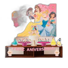 Kit festa fácil decoração das princesas. Perfeito para festinhas em casa, na escola, na creche. Esse kit conta com enfeites para mesa, toppers para bolo, apliques decorativos para docinhos. Tem um painel gigante de tnt, com 1,40m, para decorar a parede Esse super kit é composto de produtos com impressão de alta definição no eva, retratando com fidelidade detalhes dos personagens e do tema, e garantindo a qualidade e durabilidade do produto. Tenha a decoração de uma festa completa em apenas uma embalagem prática e objetiva Garanta já o seu