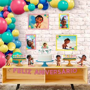 Kit festa fácil decoração da moana baby. Perfeito para festinhas em casa, na escola, na creche. Esse kit conta com enfeites para mesa, toppers para bolo, apliques decorativos para docinhos. Esse super kit é composto de produtos com impressão de alta definição no eva, retratando com fidelidade detalhes dos personagens e do tema, e garantindo a qualidade e durabilidade do produto. Tenha a decoração de uma festa completa em apenas uma embalagem prática e objetiva Garanta já o seu