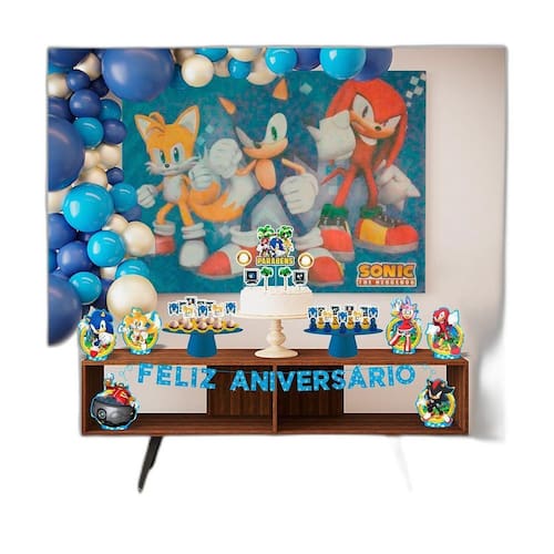 Kit festa fácil decoração sonic de aniversário 39 pç