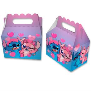 Escolha entre 3 opções de arte disponíveis no tema Stitch e Angel. Cada caixa é projetada para acomodar doces, chocolates, bijuterias, e outros pequenos presentes, garantindo uma lembrança especial para seus convidados.