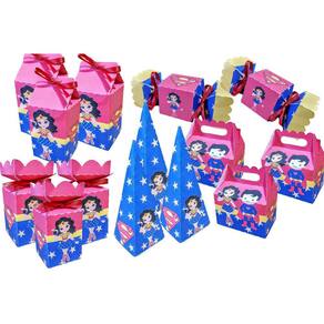 Kit de Decoração para Festa de Aniversário Infantil – Tema Super-heróis: Mulher Maravilha e SupermanFaça a festa dos sonhos com nosso kit de decoração para festa de aniversário infantil, temático da Mulher Maravilha e do Superman. Este conjunto completo e versátil é ideal para festas temáticas de super-heróis, garantindo uma celebração divertida e memorável.Nosso kit é composto por:10 caixas milk de 14x6x6cm (área útil 8x6x6cm)10 caixas meia bala de 14x6x6cm (área útil 7x6x6cm)10 caixas maletinha de 11x8x4cm (área útil: 6,5x8x4cm)10 caixas cone de 14x6x6cm10 caixas bala de 14x5x5cm (área útil 5x5cm)Fita de cetim - (obs.: as cores podem variar conforme disponibilidade de estoque)Todas as caixas são enviadas desmontadas para evitar danos durante o transporte, mas a montagem é rápida e fácil. Além disso, estamos sempre à disposição para oferecer qualquer suporte que você possa precisar.Escolha nosso kit de decoração para festa de aniversário infantil com tema super-heróis e surpreenda os pequenos com uma celebração mágica e cheia de aventuras! Marca: KIBUNITINHO