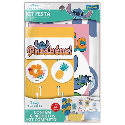 Você adora o Stitch, o adorável alienígena azul da Disney? Agora você pode trazer toda a diversão do Stitch para a sua festa com o "Kit Festa Stitch Festa Pronta". Este kit completo com 62 peças vai transformar sua festa em uma aventura mágica.