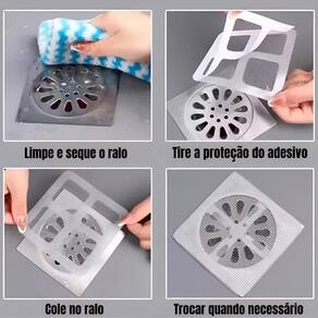 Diga adeus aos entupimentos! Práticos e eficientes, eles capturam cabelos, sabonete e outros resíduos, evitando que obstruam o ralo e causem transtornos. Especificações Técnicas: - Descartáveis: Facilidade na limpeza e troca. - Adesivos: Fixação segura e rápida no ralo. - Previne entupimentos e o surgimento de pragas. - Material: PVC - Conteúdo: 6 Unidades - Forma: Quadrada - Fácil de usar: Basta remover a película protetora e aplicar no ralo. - Dimensões Aprox.: 10cm x 10cm - Adequado para banheiro, lavanderia, banheira, cozinha, pia, dreno. Itens Inclusos: - 01x Pct. com 6 Unidades