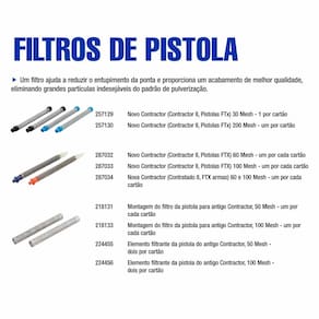 Kit filtro de para conjunto de filtro de Ferramenta de aplicação 218133 Malha 100. Leve sempre um kit reserva com você e não deixe o seu serviço parar ou perder eficiência na obra. Substituir os filtros no tempo correto trás mais economia e desempenho para o seu equipamento.