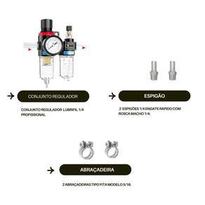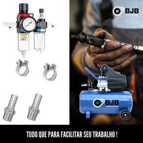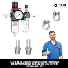Kit Filtro com Conectores para Compressores de ar Características: Alta Precisão: Regulador com manômetro integrado para leitura precisa da pressão de saída, garantindo um controle eficiente do fluxo de ar.Filtragem Eficiente: Sistema de filtragem que remove partículas e umidade, protegendo suas ferramentas pneumáticas e aumentando sua durabilidade.Ajuste Fácil: Botão de ajuste ergonômico para fácil regulagem da pressão conforme a necessidade.Especificações Técnicas: Modelo: AFR-2000Faixa : 0-1.0 MPaMaterial: Corpo em alumínio de alta resistência com copos em policarbonato para visualização clara do nível de filtragem.Conexões: Rosca padrão compatível com a maioria dos compressores e ferramentas pneumáticas.Aplicações: Uso Industrial e Doméstico: Ideal para sistemas de ar comprimido em oficinas, fábricas e também para entusiastas do faça-você-mesmo.Proteção de Ferramentas: Mantém o ar limpo e seco, prolongando a vida útil de ferramentas pneumáticas e sistemas de ar comprimido.Vantagens: Durabilidade: Construção robusta que garante longa vida útil mesmo em ambientes de trabalho exigentes.Eficiência: Melhora a performance das ferramentas pneumáticas ao fornecer ar limpo e seco, reduzindo a manutenção e o desgaste.Incluso na Embalagem: 1 Regulador com Manômetro AFR-20002 Conectores de Engate Rápido2 Abraçadeiras de FixaçãoGarantia: Confiabilidade: do vendedor de 3 meses contra defeitos de fabricação.Adquira já este kit completo de regulador com manômetro e conectores, e garanta a eficiência e a longevidade das suas ferramentas pneumáticas. Ideal para quem busca qualidade e precisão em suas atividades diárias Marca: Não Informado Ean: 7891686783416